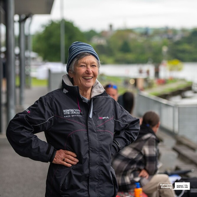 Tina has experienced the full gambit that rowing has to offer here in NZ and overseas. Some rowers may recognise her from being on the umpire boats at regattas at Lake Karapiro during the regatta season and winter long distance series the WRA host. She has been umpiring since 1994 but didn’t always set out to be an official. Her passion for the sport and being part of the community is what has kept her coming back each season. She mentioned that the officials across NZ are like a family. She has known some for a long time now and enjoys the comraderies they have developed.